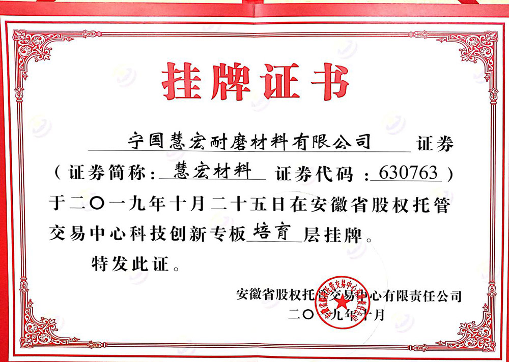 可靠的設(shè)備,才能長久穩(wěn)定運行全面推行ISO9001;2000版質(zhì)量管理體系標(biāo)準(zhǔn),秉承“科學(xué)管理、精心制造、優(yōu)質(zhì)服務(wù)、追求卓越”的質(zhì)量方針,不斷打造高端耐磨材料產(chǎn)品。